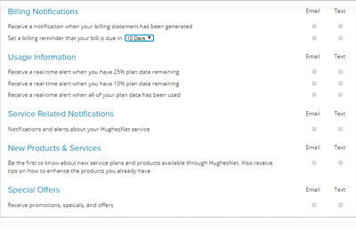 Personalice sus preferencias de comunicación con HughesNet por correo electrónico o SMS.