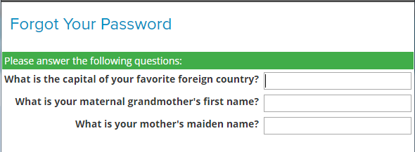 3. Se le pedirá que responda las preguntas de seguridad preconfiguradas. Deberá responder todas las respuestas correctamente para poder continuar. Las respuestas distinguen entre mayúsculas y minúsculas. Haga clic en “Continuar” en la parte inferior de la página.