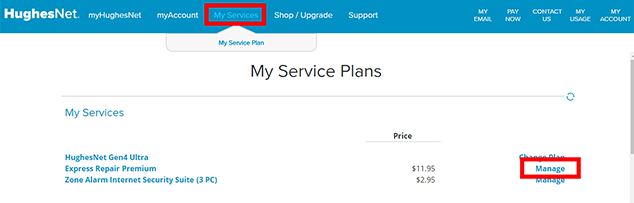 Inicie sesión o regístrese en miHughesnet.com.mx. Una vez que haya iniciado sesión, haga clic en Mis Servicios. En esta página, podrá ver el servicio de HughesNet que tiene actualmente.