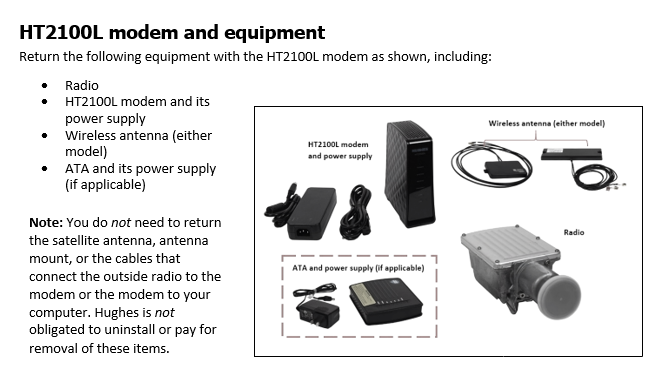 For instructions on how to uninstall and return your Hughesnet leased equipment, click here.Â