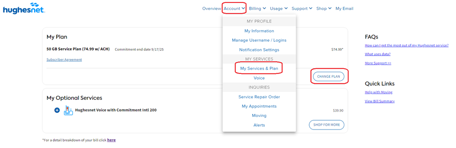 Changing your plan on myhughesnet.com