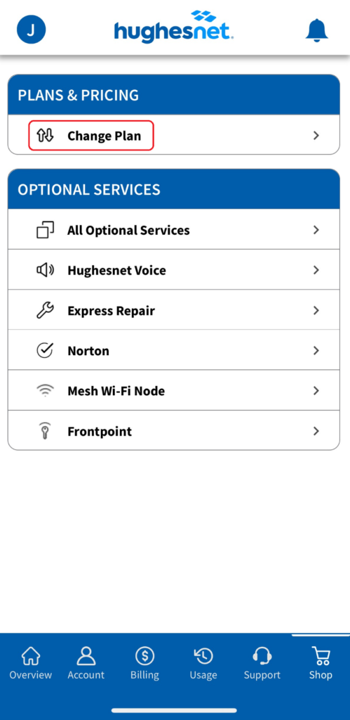 Changing your plan on myHughesnet (Mobile) App